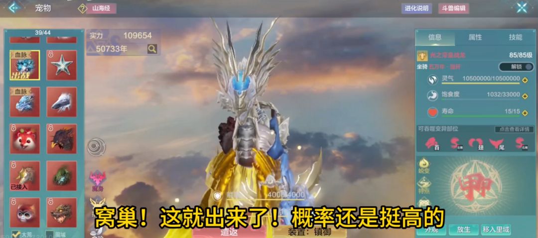 这次鲲鲲再升级,战斗力绝对不容小觑!又有化鹏的技能,又具备飞天驮城的功能,又是首批魔化本体宠物,又是进化兽5%的血脉,又是八万年!