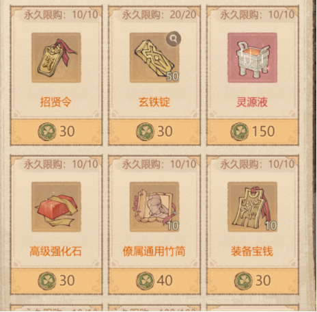 氪佬→车皮(铁甲雄心)、红书、玄铁、红砖、竹简、灵泉液、稀有兑换书(可拿一个玉环)