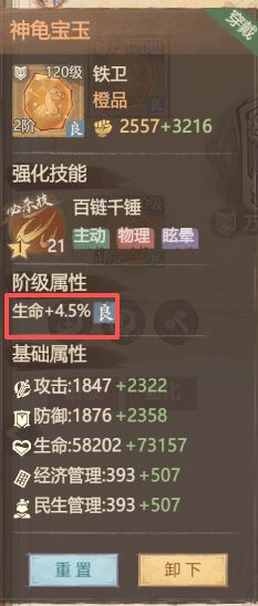 玄龟(主力铁卫首选)——优先伤害减免、格挡率、免伤、防御和生命百分比