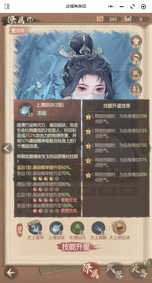 僚属技能升星——绫清竹篇