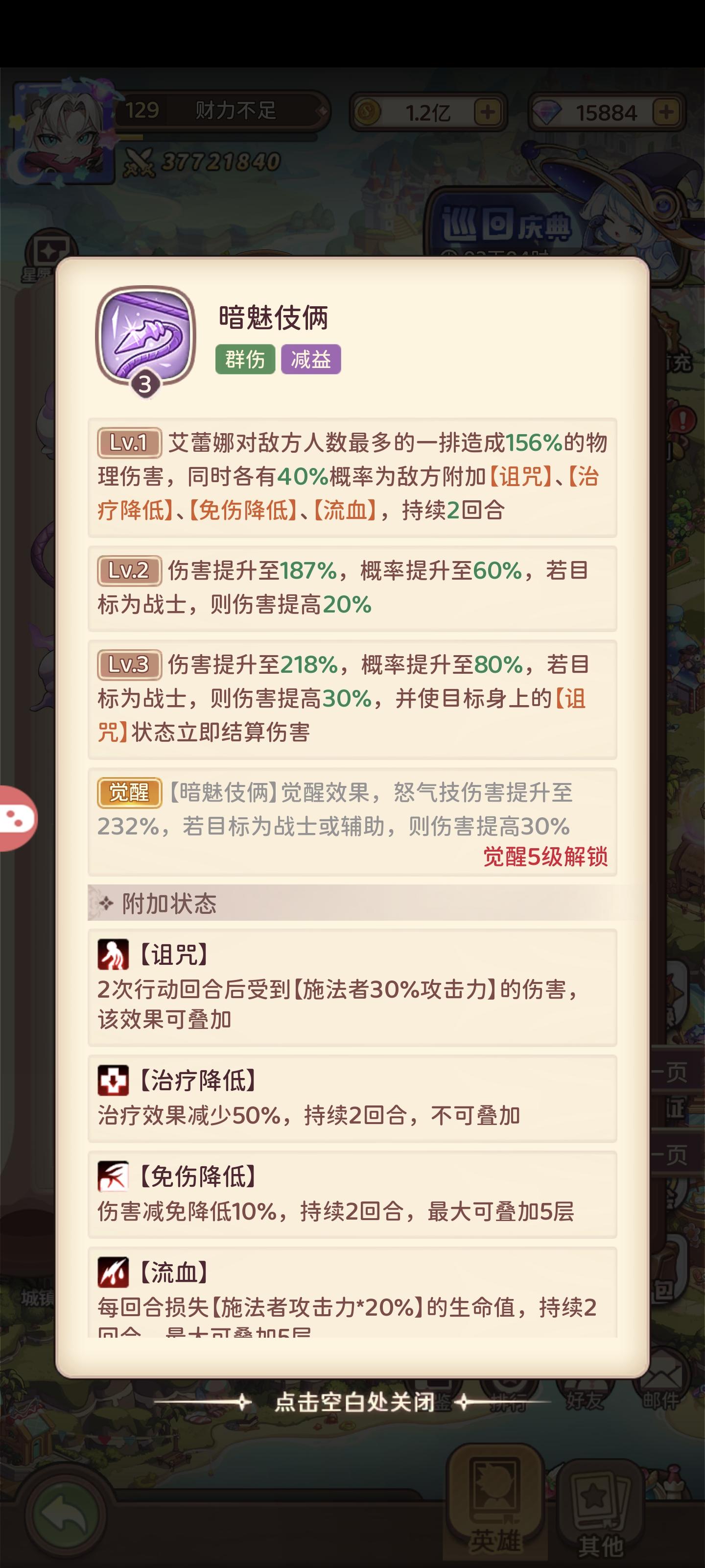 主动技能 为人数最多的一排敌人施加各种负面状态 并且能引爆诅咒状态