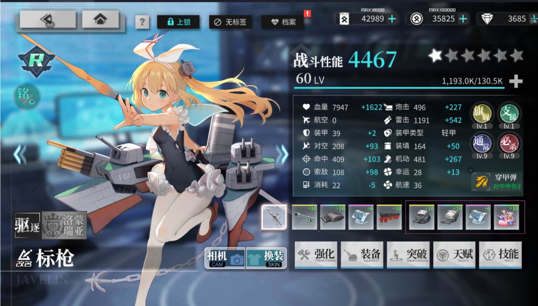 本攻略昆西与标枪面板不得低于图示,这个已经是极限练度了,再压下去委托可能有不保S的风险。