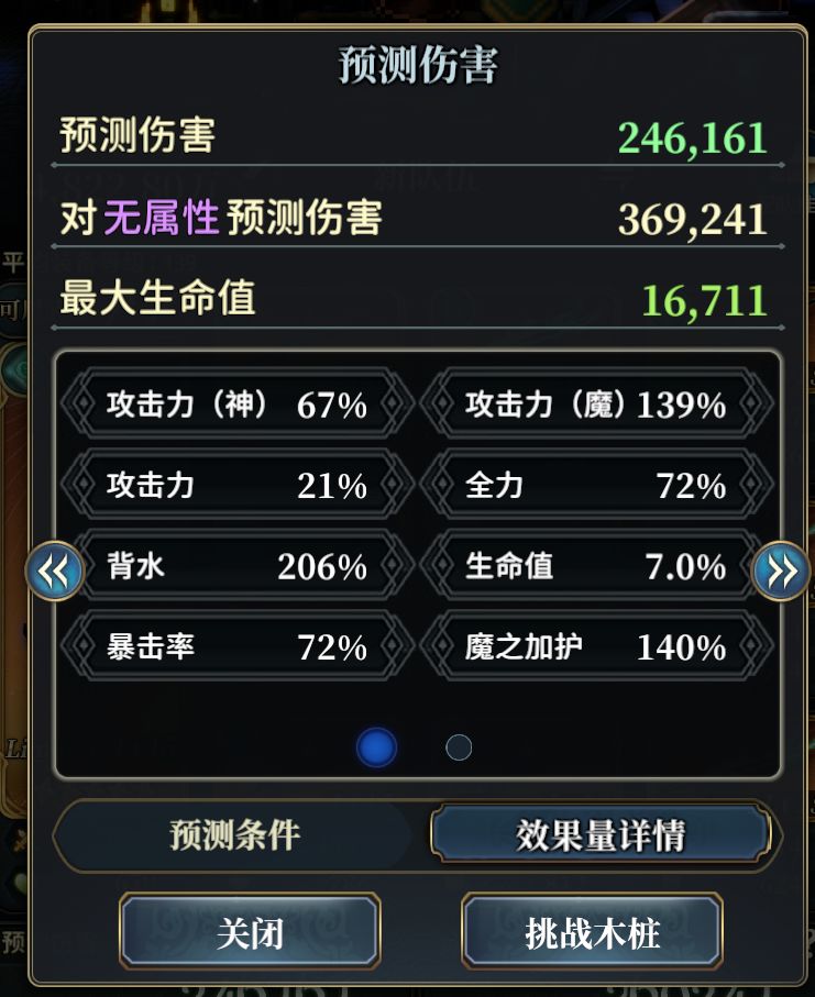 Figure 1:效果量详情面板,在配队--->预测伤害栏--->右上角问号处打开