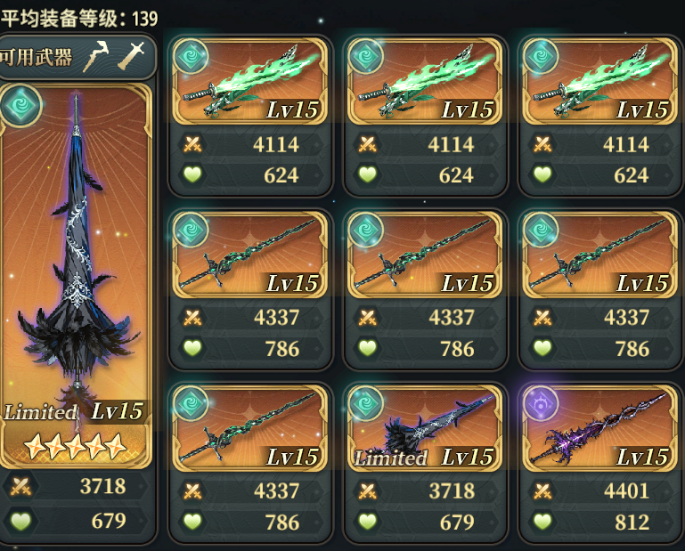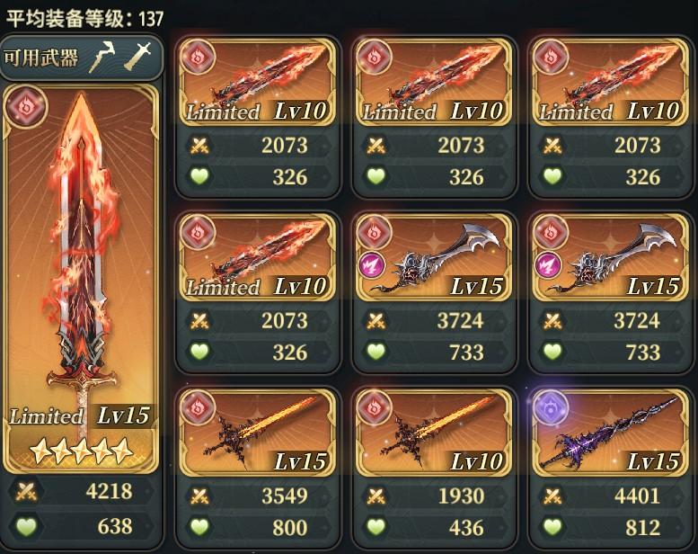 1主手武器(可释放主动技能武器)+5~6主力武器(神魔自选)+1~2补充武器(与主力武器属性相反)+ 1黑叔叔武器(康斯洛特掉落武器) + 1EX武器(大幅提升伤害上限的武器)+1自由武器位(补需要的乘区)