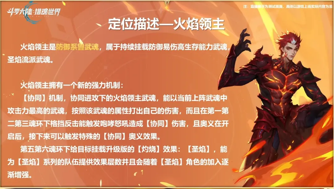 首先焱的定位很简单,能挂防御易伤,能大幅减伤,能打协同伤害,还能灼烧增伤,且PVP中的独特机制简直看成一绝......哦对了,这个协同伤害是指按照我们上阵的4个武魂中攻击力最高的角色属性来计算,这和之前攻略中的预判有一些出入。