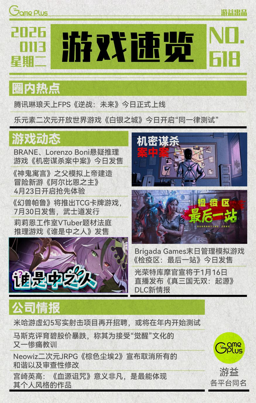 1.米哈游虚幻5写实射击项目再开招聘,或将在年内开始测试