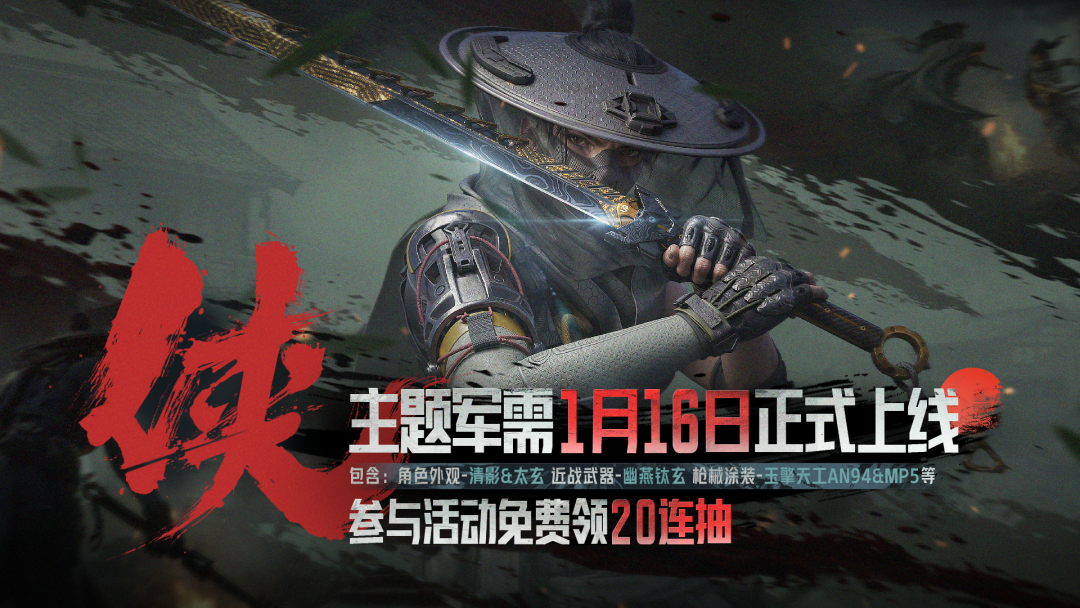 暗区「侠」风来袭,全新【侠】主题系列军需将于1月16日上线!近战武器【幽燕钛玄】,全新的外观、全新的姿态!参与活动即送20连抽福利!