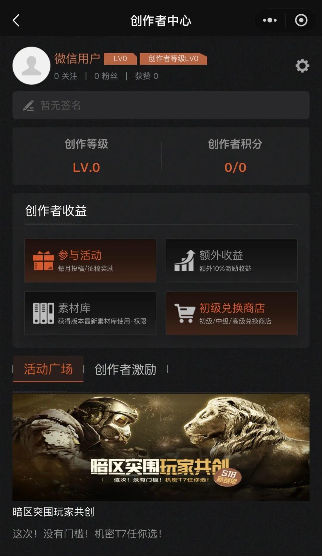 进入暗区突围工具箱页面后,点击右下角【我的】,找到【创作者中心】点击进入创作者中心页面。