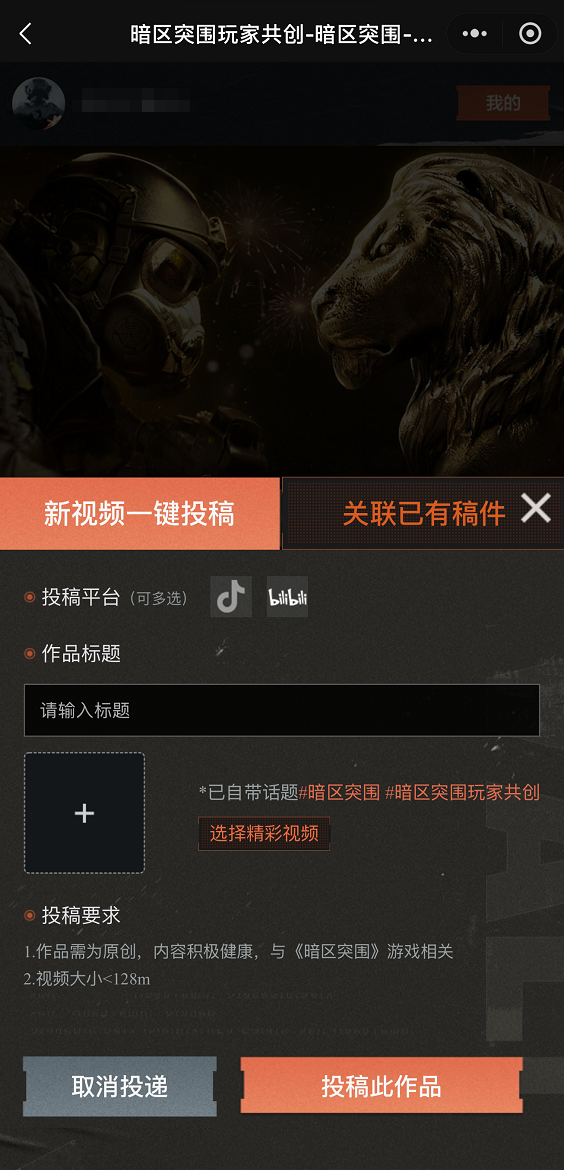 点击活动广场处的【暗区突围玩家共创】即可进入活动页面,绑定抖音&B站链接,跟随流程指引即可发布作品获取创作积分!