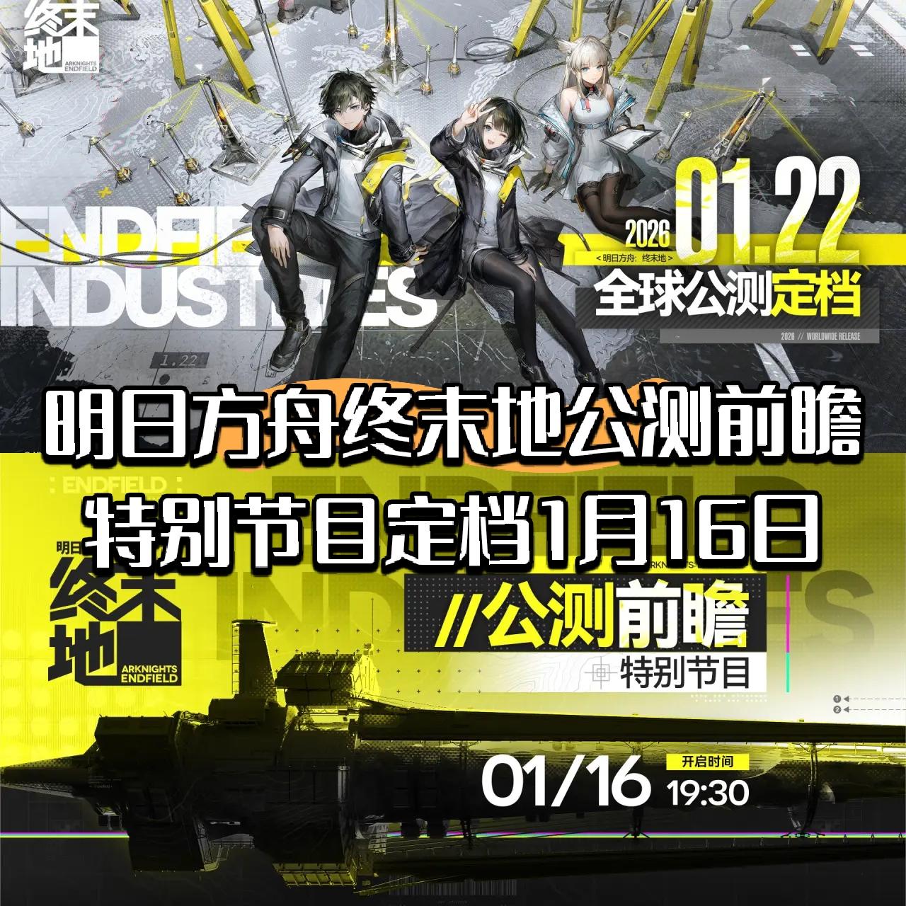近日,《明日方舟:终末地》官方正式宣布,将于1月16日19:30播出公测前瞻特别节目,这将是游戏在1月22日全球同步上线前,最后一次官方大规模发布会节目将在多个平台同步直播![[TapTap表情|TapFamilyxdoro2_粉狗比心]](https://img.tapimg.com/market/images/101c7e3200596fe8e03765080b467fb8.gif)
