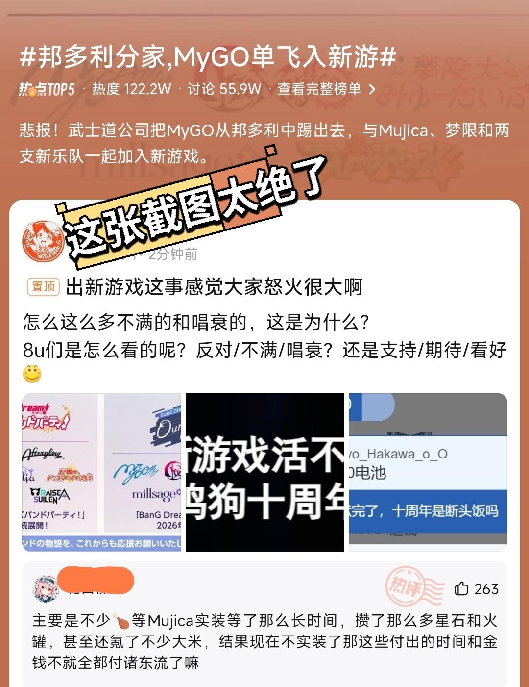 目前这一决定在玩家社区中引发了轩然大波和强烈的失落感。据观察,许多同时推新老乐团的玩家感觉被强制分流,情感上难以接受,并认为游戏未来一定会受到报应,目前相关话题已冲上热搜榜单,持续引发网友热议