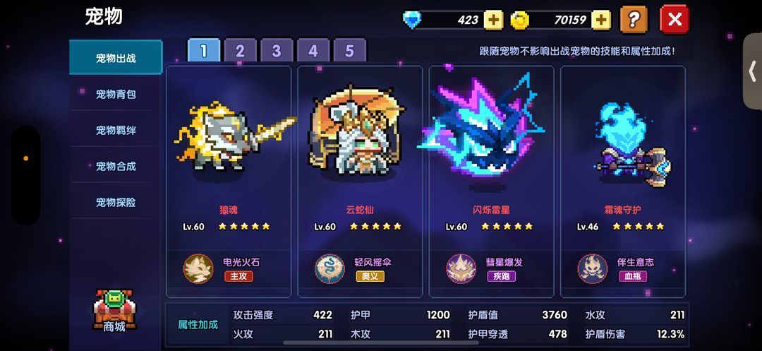 藏针、强压(用于秒挂宠物魔丸)、弹刃、魔力护盾(弹刃和魔力护盾主要用于保护护盾)