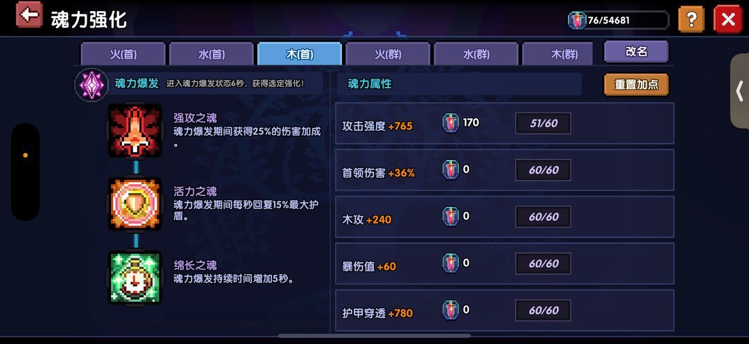 魂力属性方面,建议先拉满首领伤害、护甲穿透、暴击值,水攻和暴伤1:1加即可,攻击强度和无限攻强按8:3的点。
