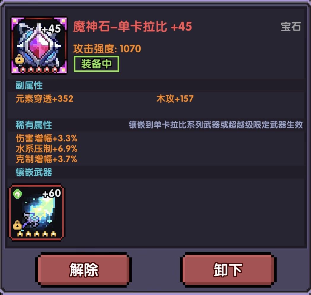 (优先保证水系压制拉到79%,其次再考虑其他稀有属性,等级未到+18的需考虑携带技能等级宝石)