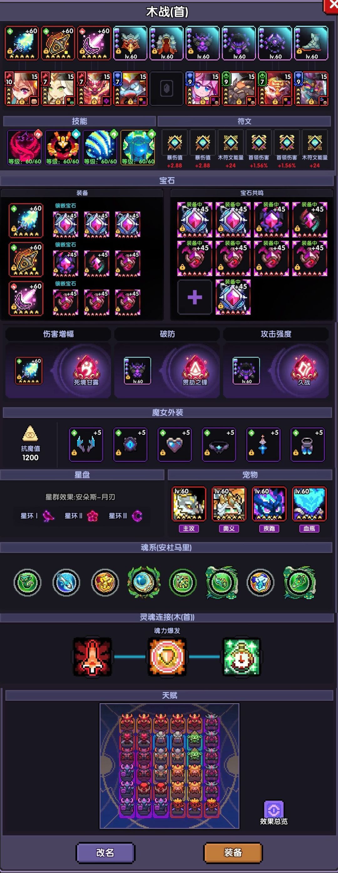星盘还是采用经典的安朵斯月刃搭配,可以提供20暴伤、10%首领伤害、100护甲穿透、100元素穿透。