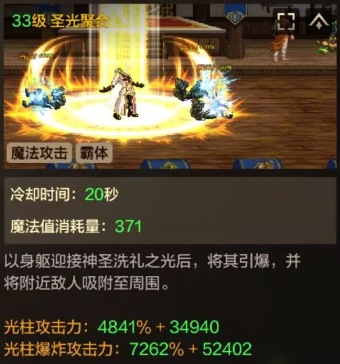 转职后的技能加点比较简单,技能点太富余了,只需要把圣光聚合点1级,其余所有技能全部加满就可以了,圣光聚合这个技能在释放时有霸体效果,并且具有y轴攻击判定,作为pk起手技能是非常有效的
