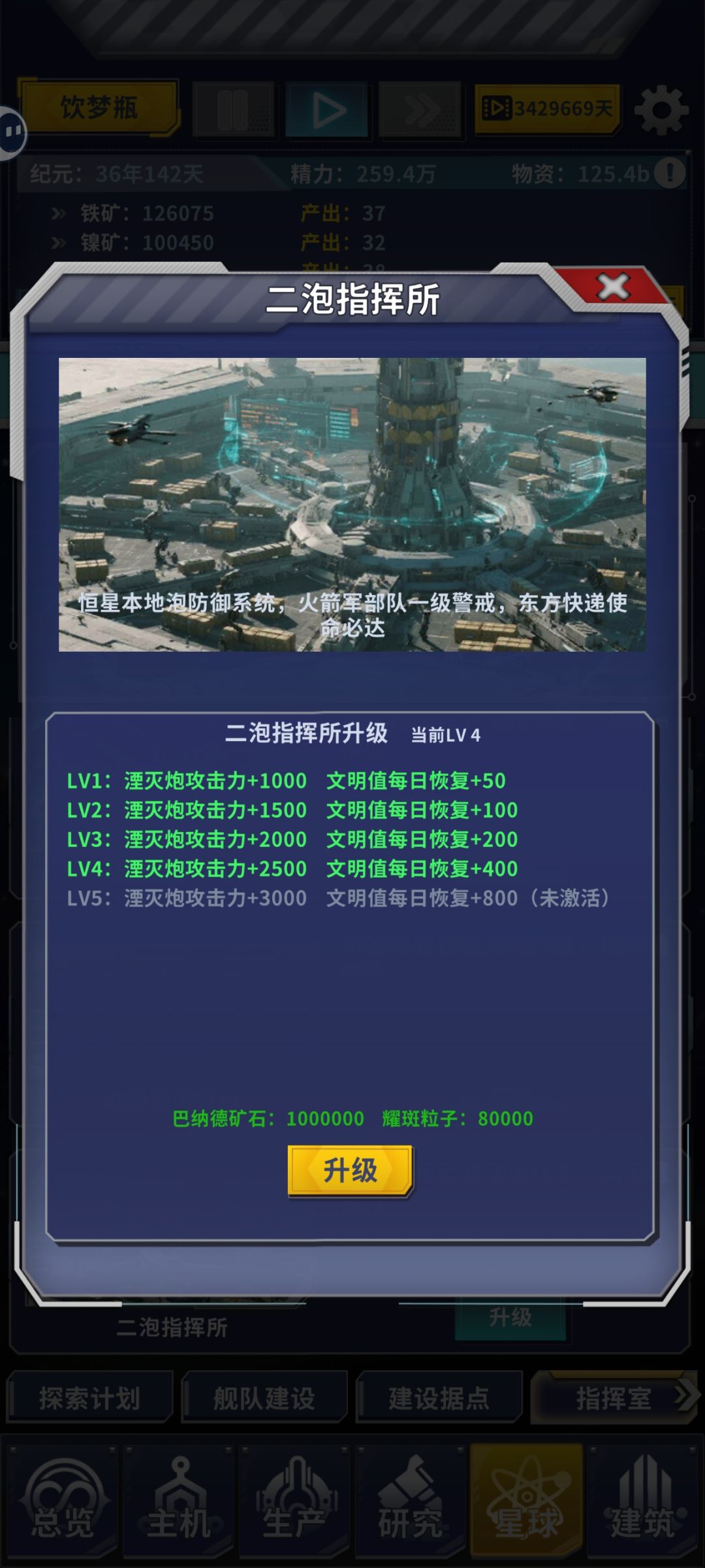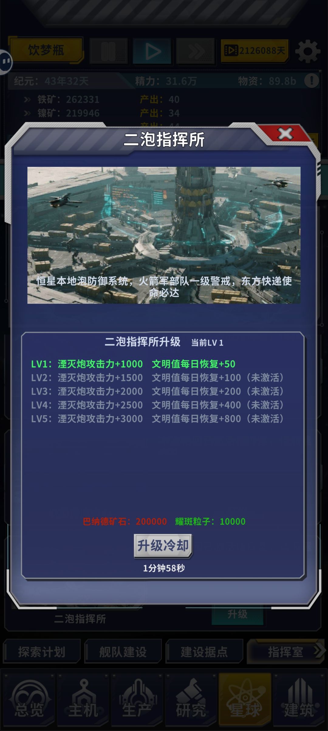 算是解锁二泡指挥室(如今升满了)