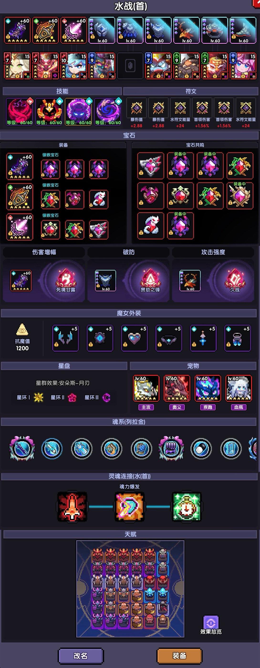 星盘还是采用经典的安朵斯月刃搭配,可以提供20暴伤、10%首领伤害、100护甲穿透、100元素穿透。