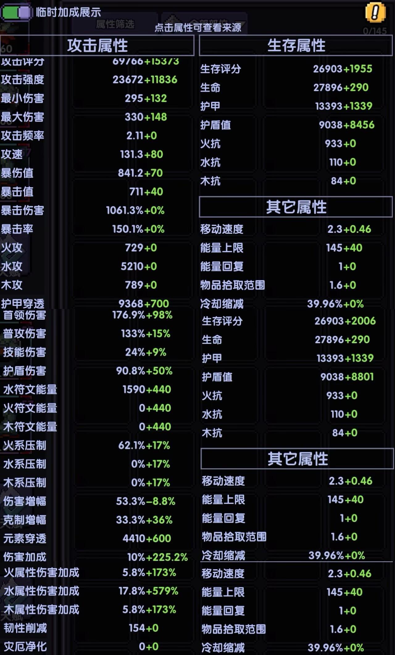 副属性:暴伤值(没有四属性暴伤可以用水攻代替)