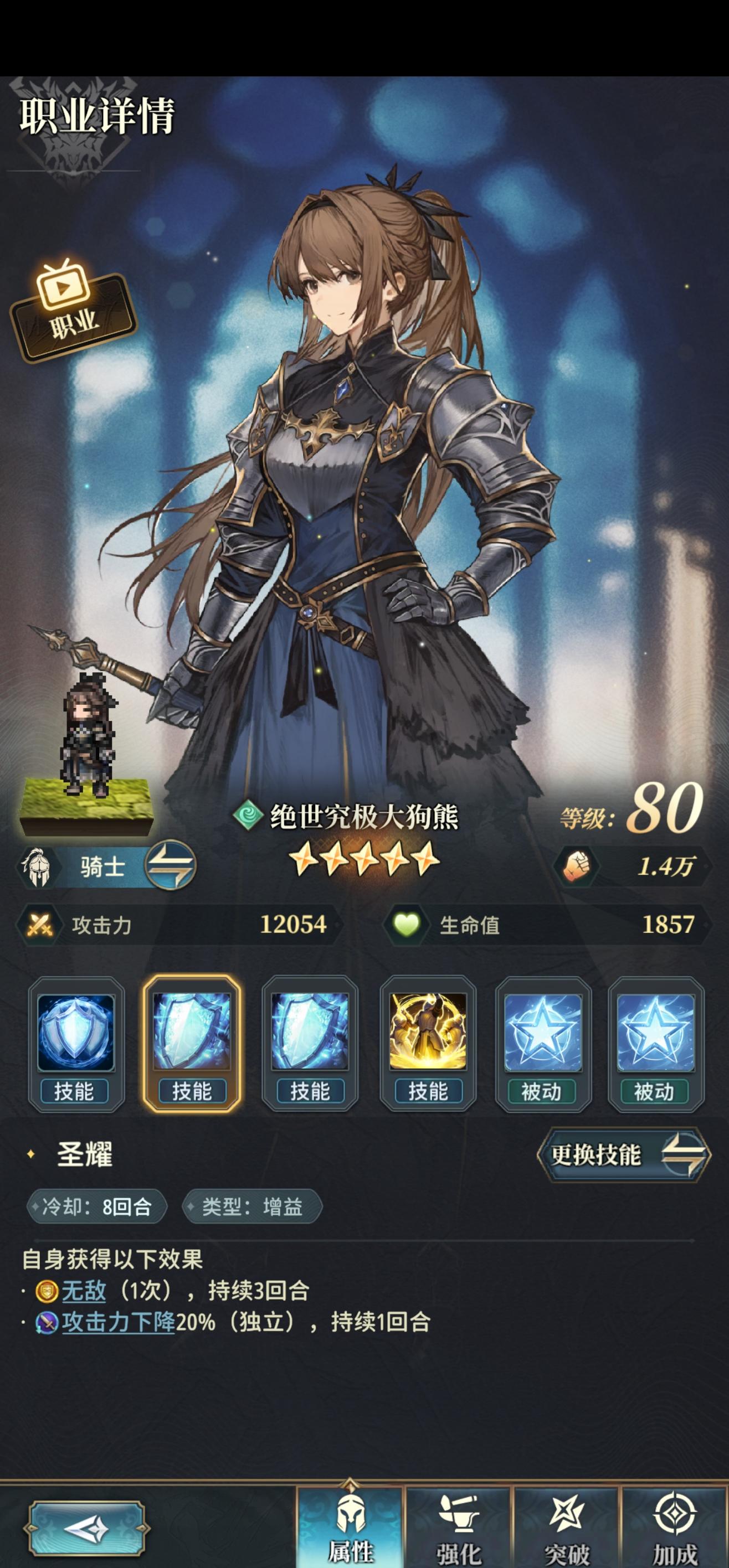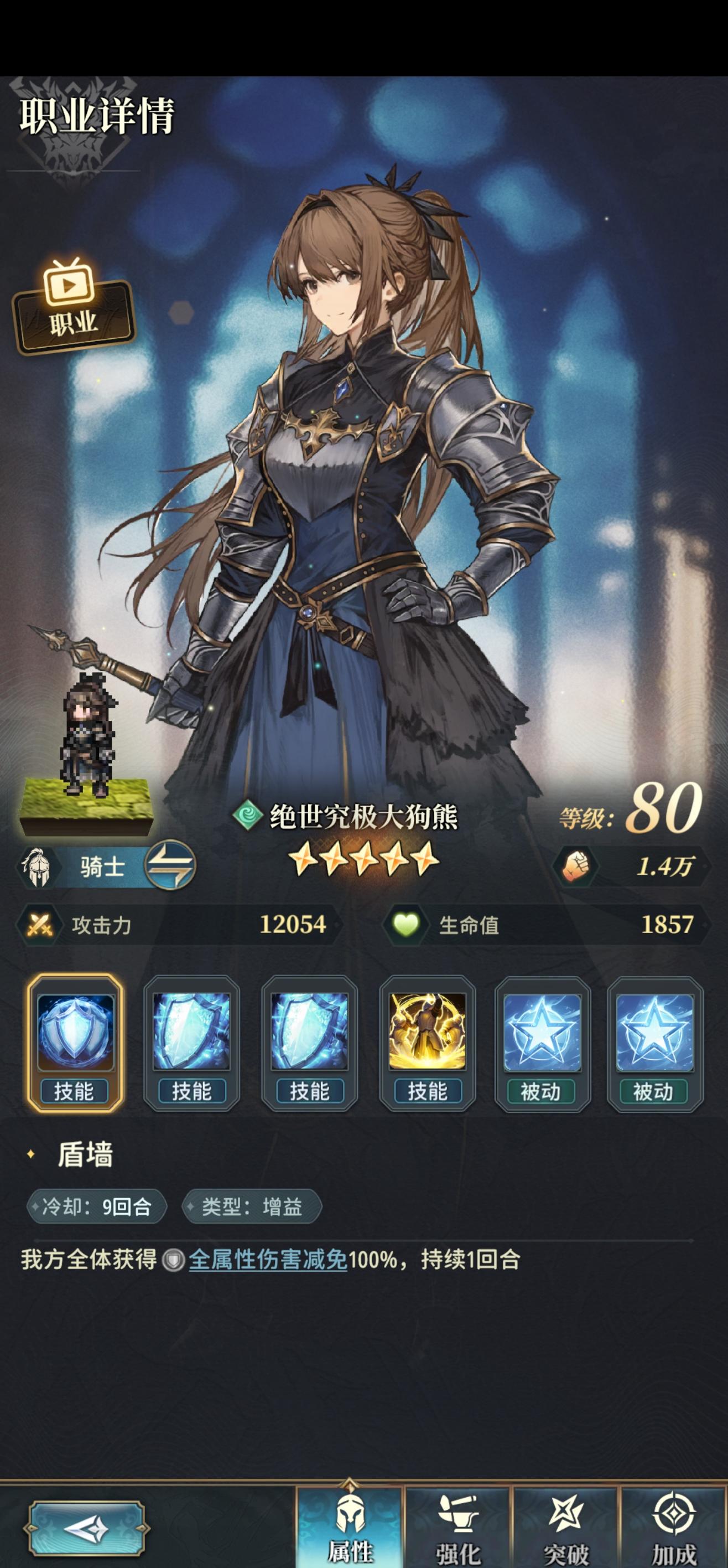 (主角死了也开不了,下一个技能用骑士二技能和群体升防御过)