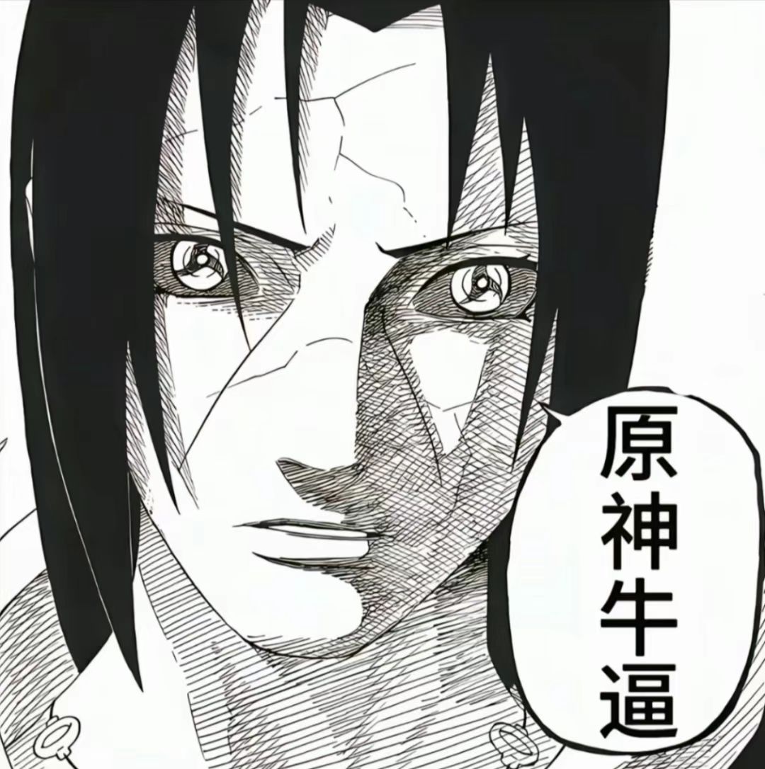 一格火影忍者漫画中秽土转生后宇智波鼬与佐助联手解决兜的剧情中,由于宇智波鼬刚复活空白对话框的可玩性而被网友P上了“原神牛逼”四个字的原神梗表情包,成为了日常婉拒骚扰,活跃朋友感情,打破情侣冷战的最好帮手。