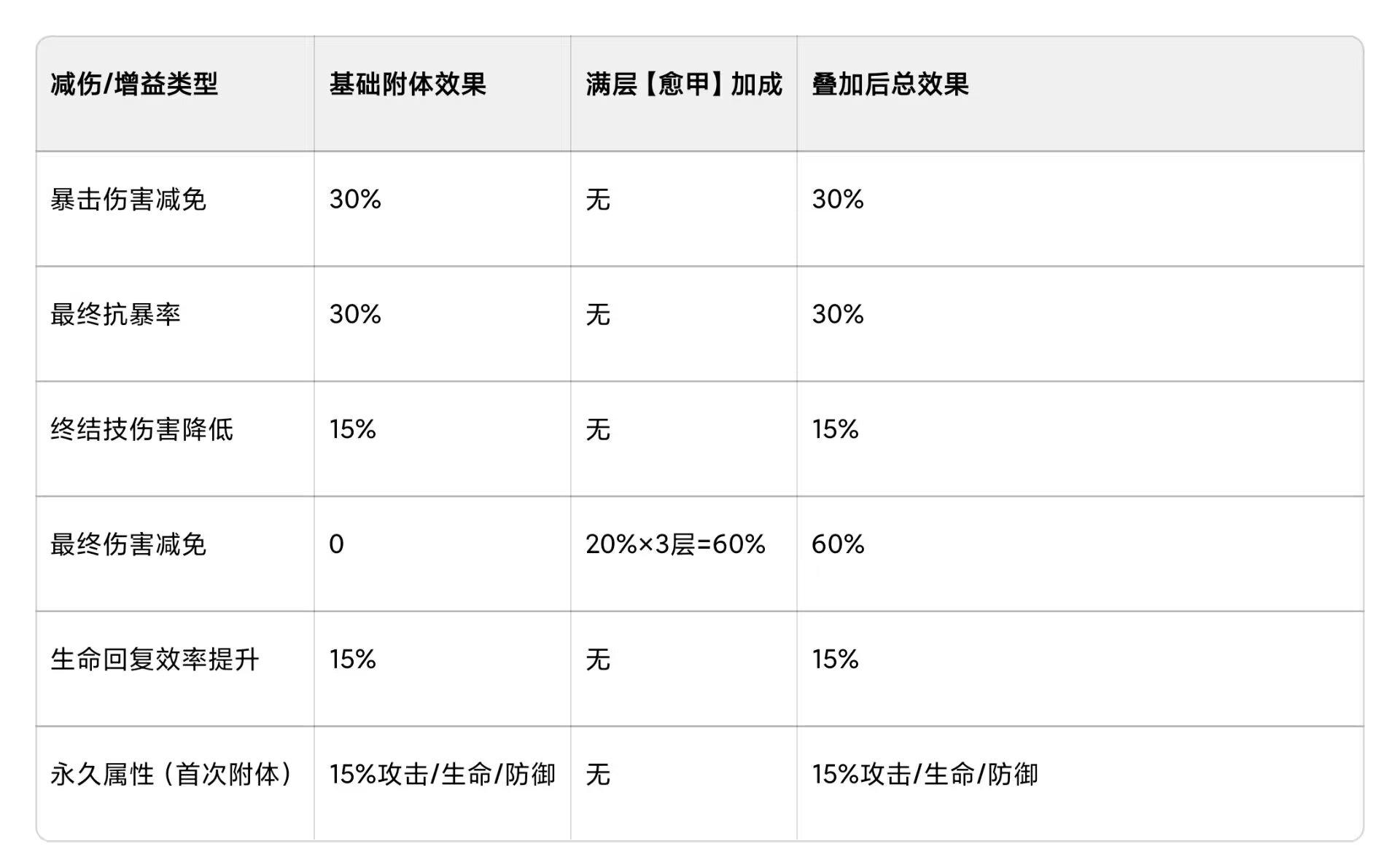雅典娜附体期间(含满层【愈甲】)的生存能力叠加表: