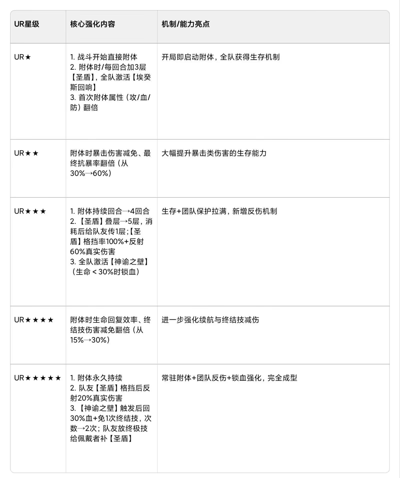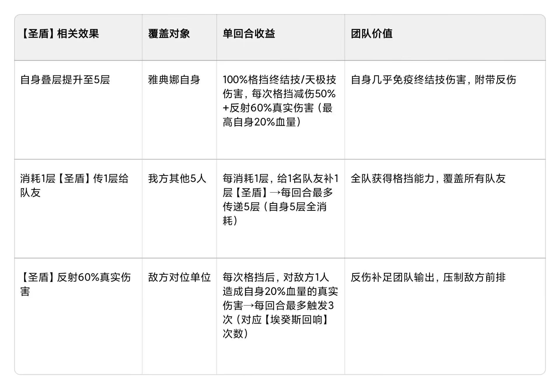 UR★★★后【圣盾】的团队收益表(基于6v6环境):