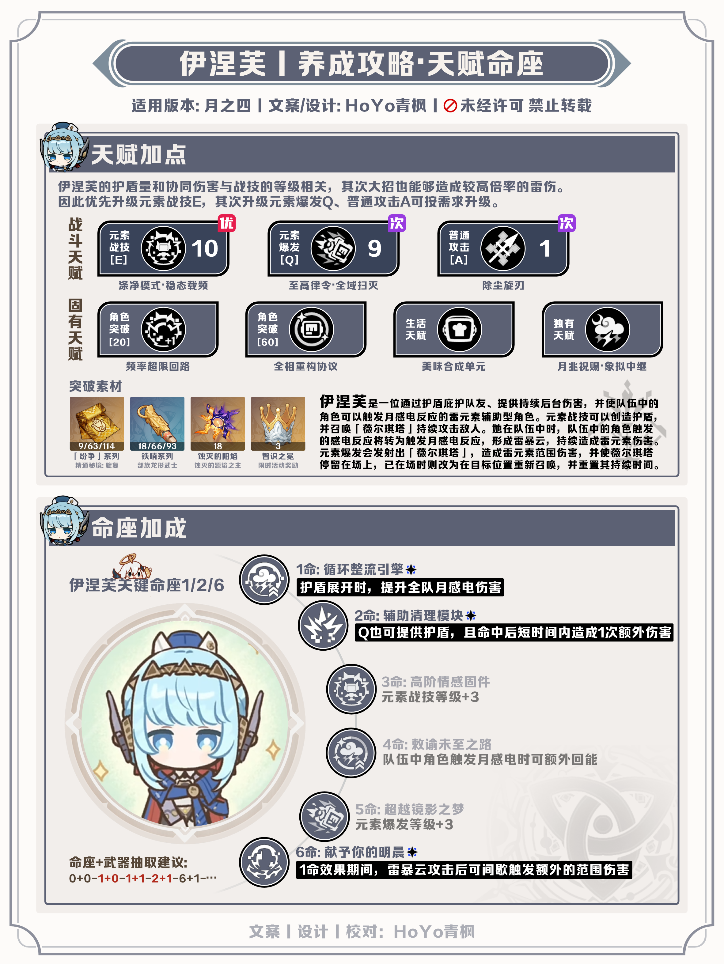 接下来以图解的形式简要解析「伊涅芙」的养成参考,帮助大家快速了解角色及后续培养方向;