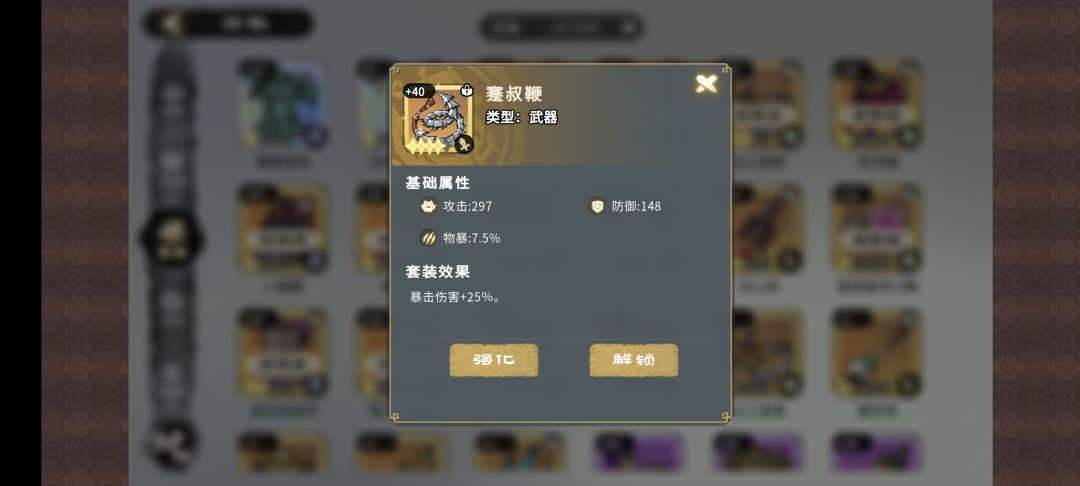这里要着重提一下创新的装备系统,官方给装备设置很高的属性,想让玩家相对忽略每只猫的固有属性,多多组建自己喜爱的猫色队(如母猫队,秦齐国家队等等)而不是相对固化的制服队(如魏武卒戟兵队,伏君弓弩队,秦阵弓弩队,以后会围绕建队思路单独出一期)。出发点是很好的,但从目前测试中看,队伍角色相较难出(及时在送了相当数量的福卷),养成成本巨大,猫色队需要在漫长的养成过程中,才能实现。这也让部分玩家因装备系统把此游戏归类成了数值游戏。