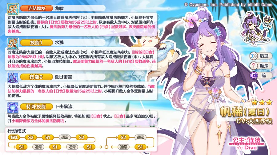 1月14日维护后,新角色★3帆稀(夏日)(CV:大西沙织)正式登场,技能详情与行动模式公开!