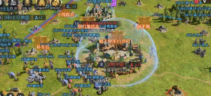 我我们先宣战他们后开免战,才打了5分钟免战生效了。啊?已经宣战了还能开免战,这就像古代我方已经开始攻城了,你方明摆着打不过然后你方把免战牌往城楼上一挂,结果真的成了,我们就得乖乖退兵。太强了,真的是神人做的游戏