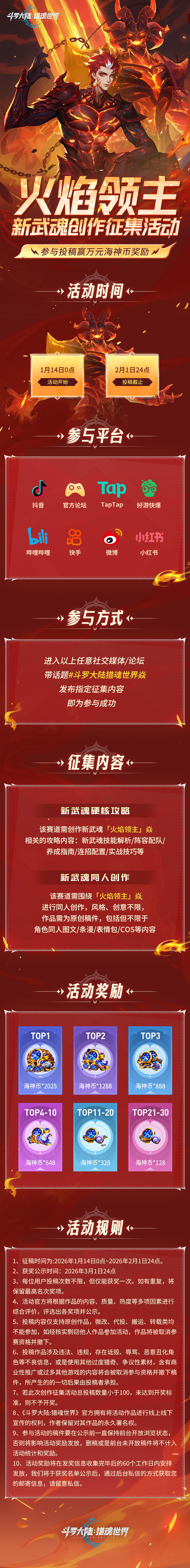 《斗罗大陆:猎魂世界》「火焰领主」武魂创作征集令,瓜分海神币