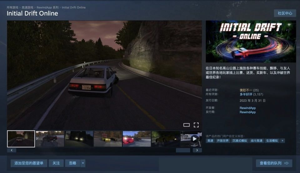 Steam喜加一:《Initial Drift Online》限时免费领取 原价22元