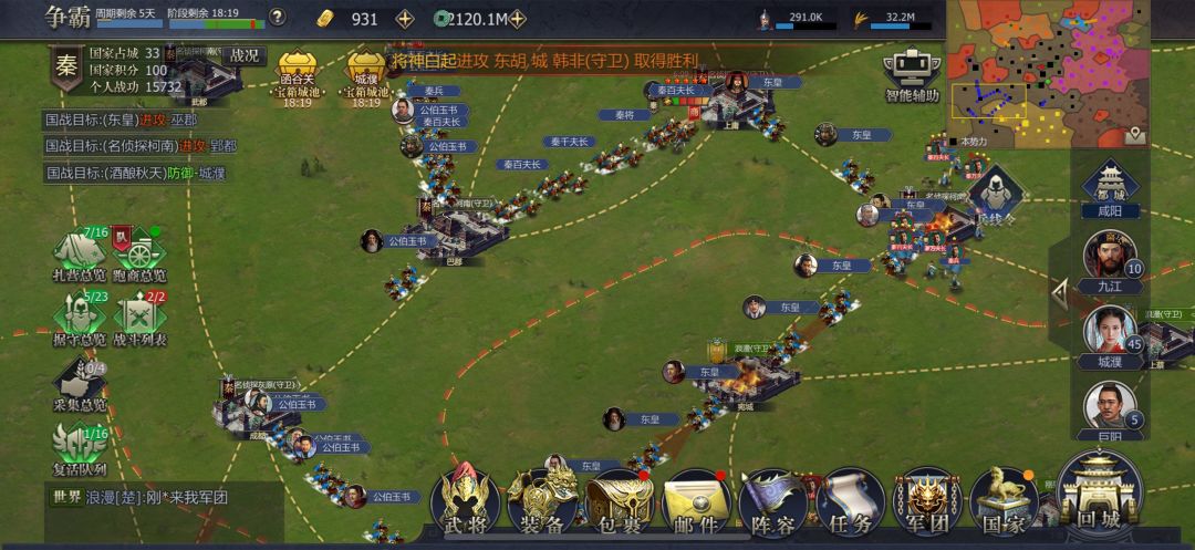 1. 对秦而言:东线在城濮成功牵制齐国,使其无法援楚;南线取得巫郡,获得今晚继续攻楚的关键前进基地,坐拥32城牢据国战榜首。