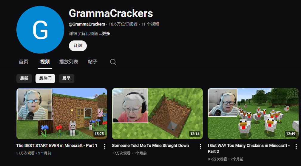 2025年10月底,苏以"Gramma Crackers"(源于她对全麦饼干的喜爱)为ID,在YouTube发布第一条《我的世界》游戏视频,没想到迅速突破50万播放量,一个月内频道订阅数飙升至10万(部分外媒数据显示后续增至15万)。看到网友热情响应,她在视频中明确说明:所有广告收益与观众捐款都将用于杰克的医疗开支。
