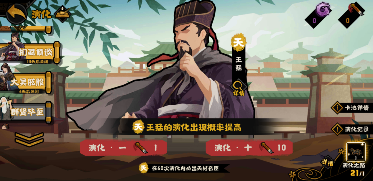 1月30日至2月12日,辅国良才,经世能臣。天材名臣·王猛演化概率限时上升!感兴趣的王上不要错过哦!