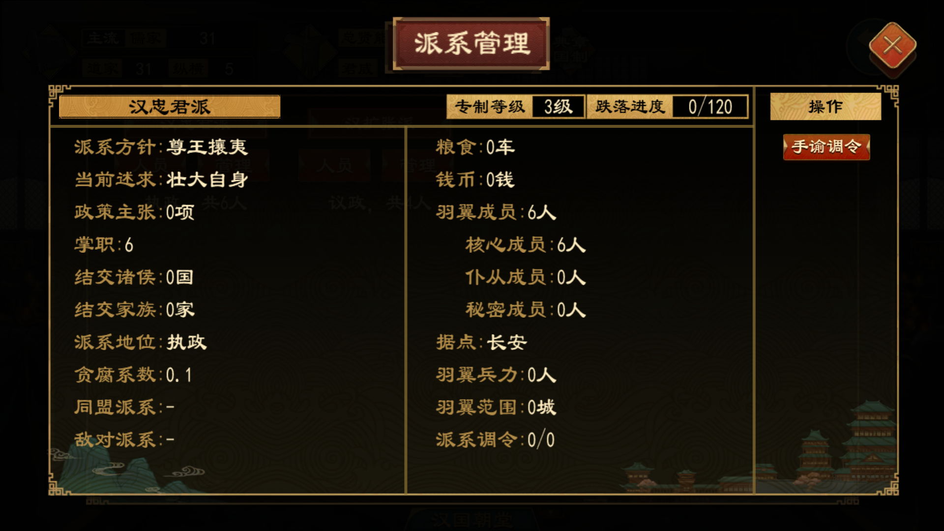派系不仅是政治集团,更暗藏经济掠夺与军事异动的可能,需君上时刻警惕。派系林立之下,君上需兼顾 “用派” 与 “制派”,方能稳固皇权、避免祸乱;维持专制等级,君威不振,则权臣生乱;专制不立,则朝纲难肃。