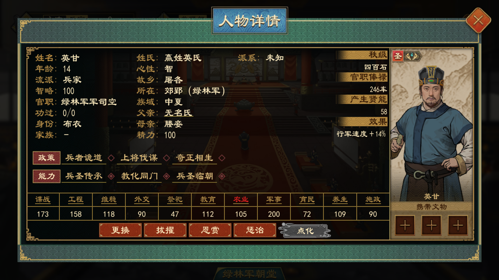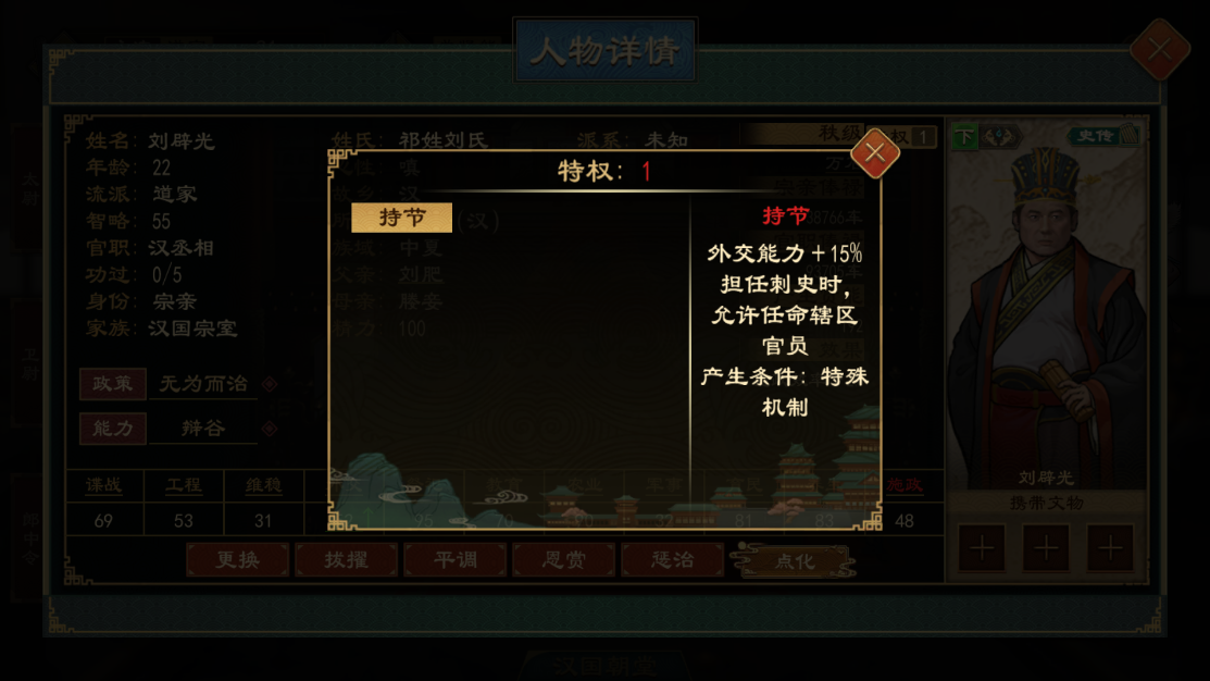 割据势力拥有专属的 “帷幄官制”,各职位可以影响军队的士气、纪律、生还率、行军速度等。