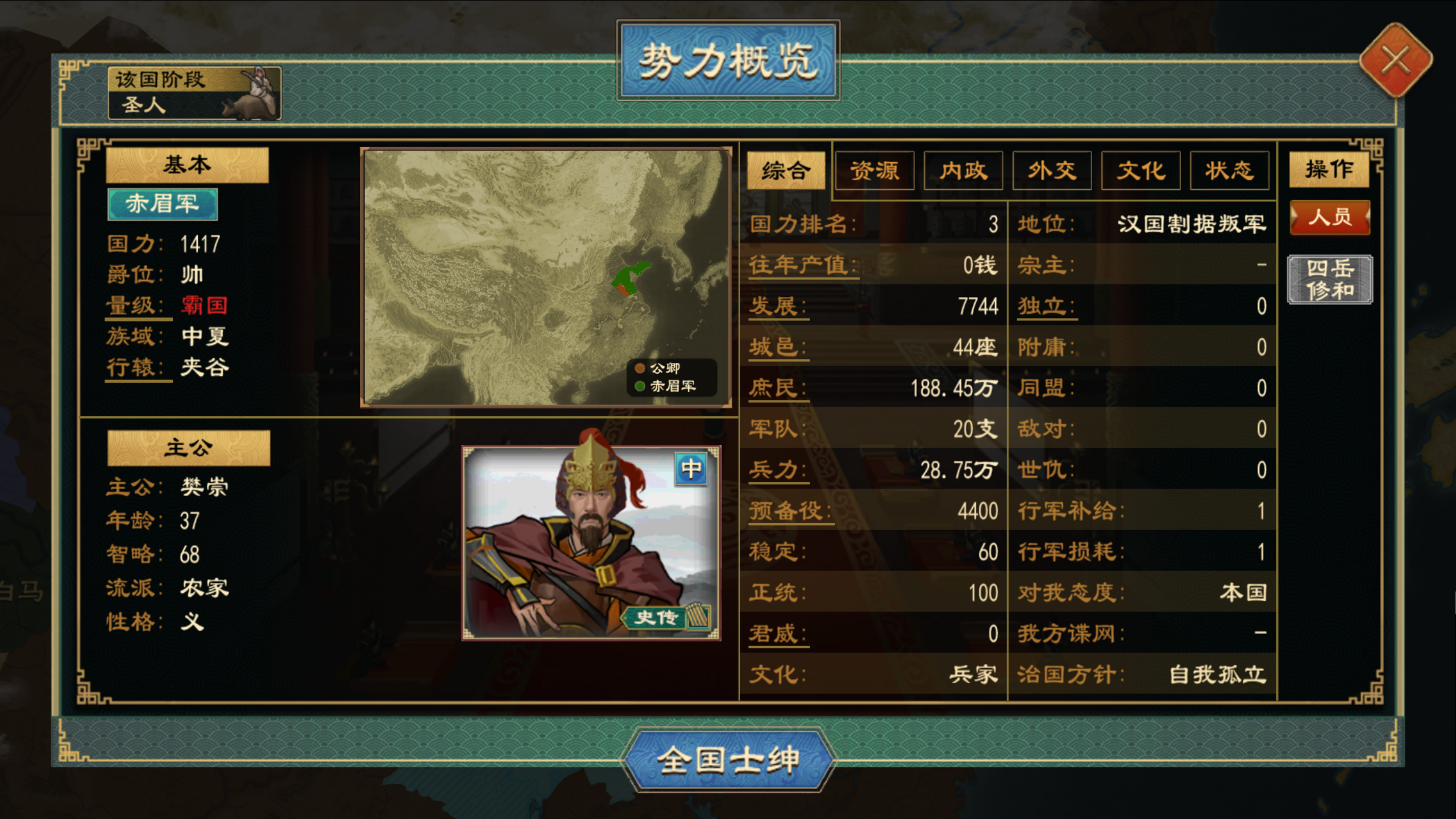 当我方交战城邑位于交好的部落/山寨活动范围内时,相应部落、山寨将派出其人口25%作为义军参战(最高不超过100000人)。