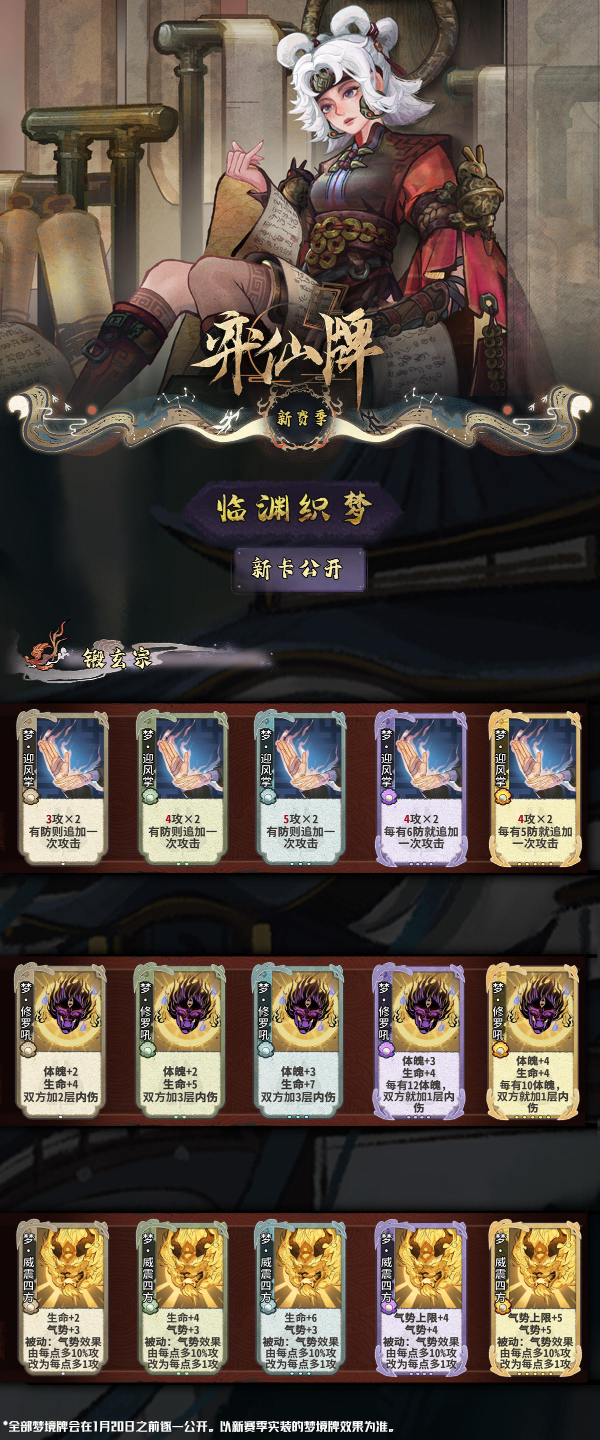 「临渊织梦」赛季将会在1月20日更新后开启。更多新赛季信息即将公开,敬请期待。