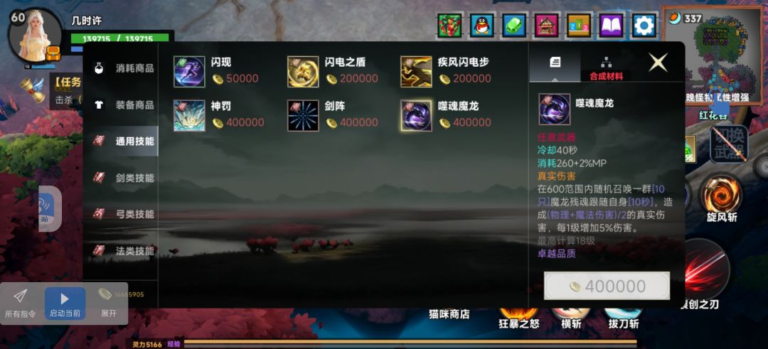 通用型技能中魔龙和剑阵都能脱手持续挂伤害,属于稳定触发器