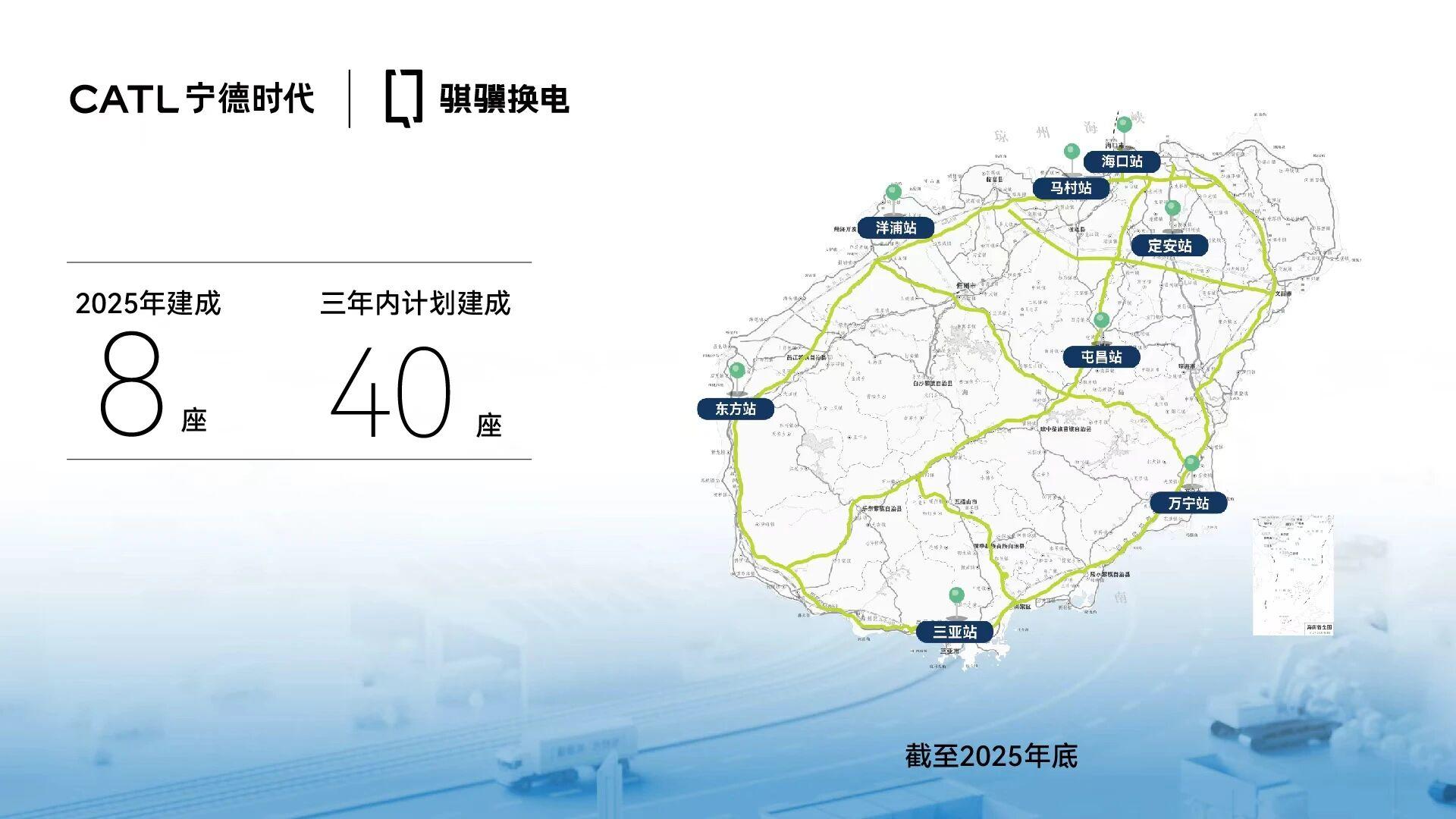 ♦时代骐骥于2025年在海南建成投运8座重卡换电站,实现全岛基础补能网络覆盖。未来3年内,全省换电站规模将扩大至40座,推广电动重卡超4000台,重点服务港口、高速干线和物流枢纽等场景,构建“港口-高速-枢纽”的立体化绿色运力服务体系。(信息源:骐骥换电官方公众号)