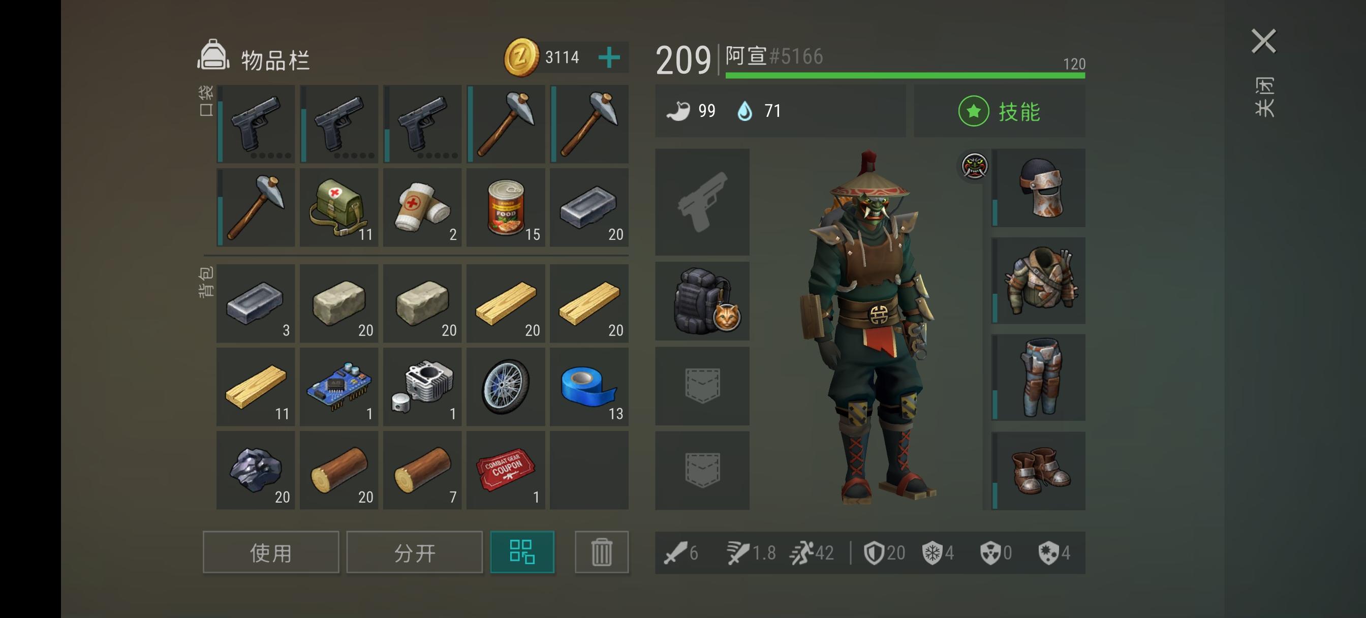 1把二级斧,4把一级斧