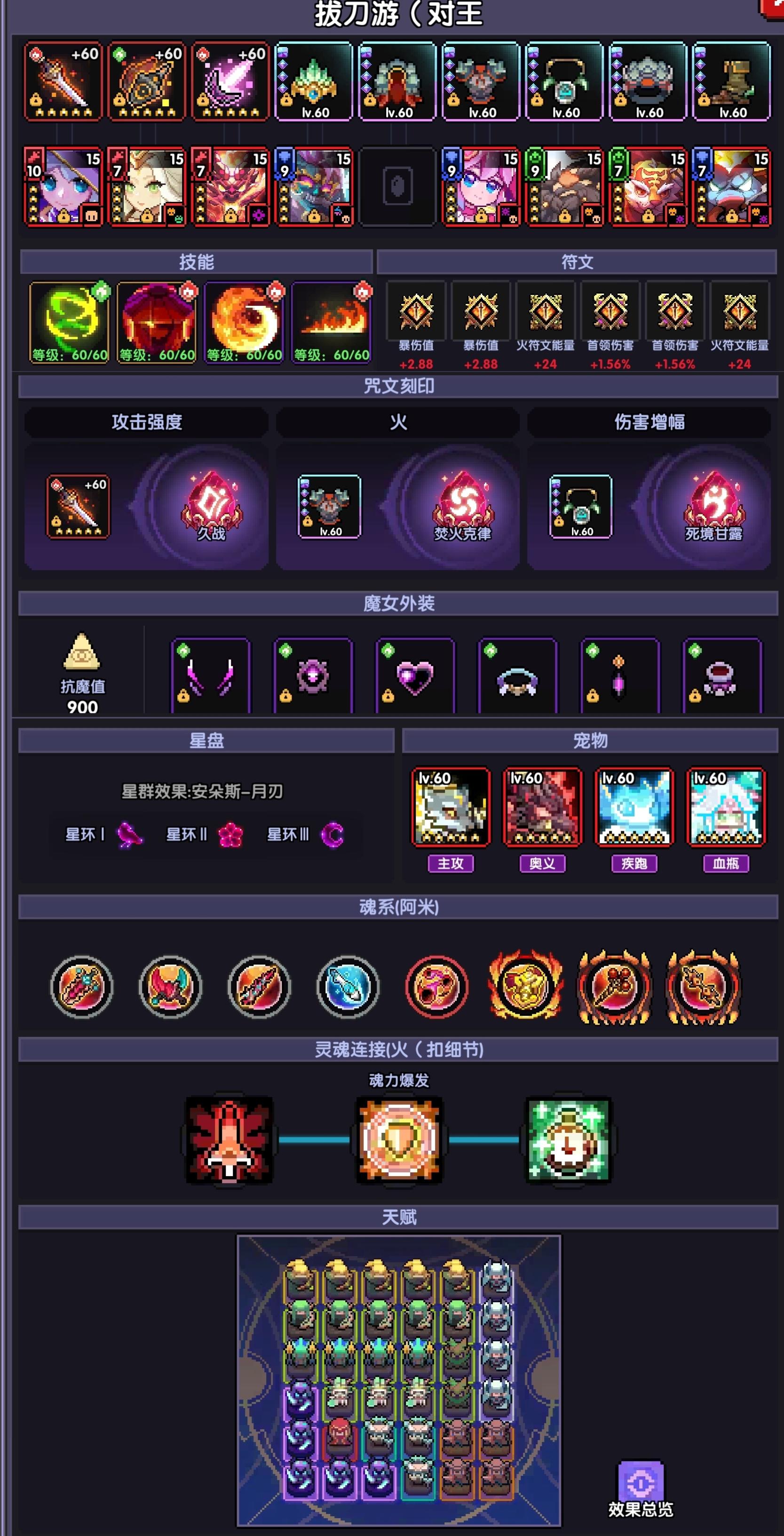 面板元穿+宠物提供元穿+火游橙技能400削抗-怪物抗性=元穿溢出量
