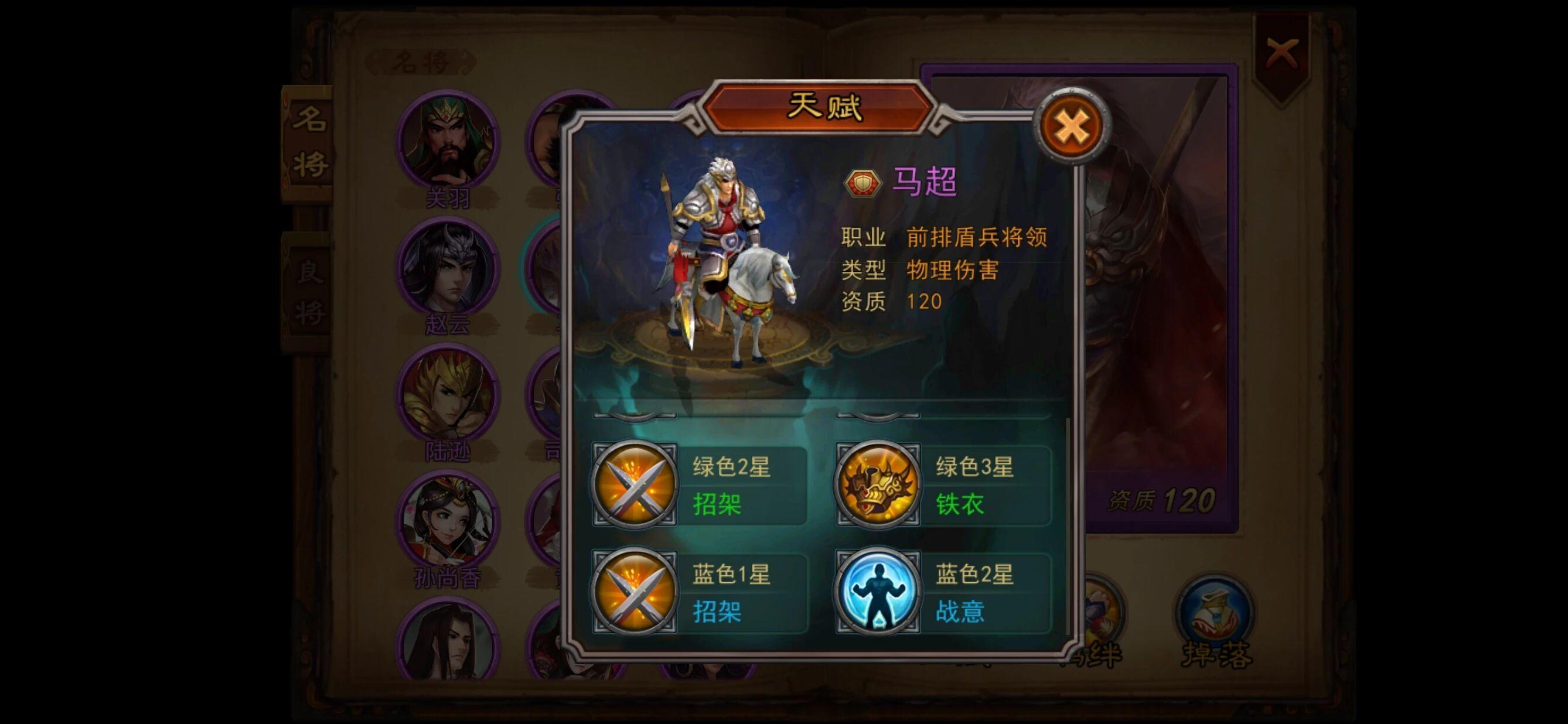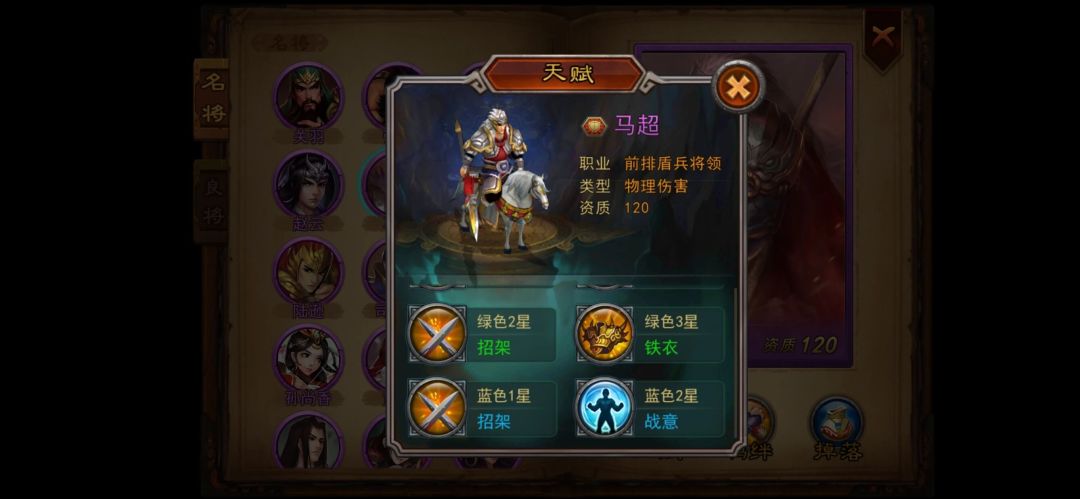 选择武将时,我们需要先看武将的资质,优先选择120资质的武将。其次,在120资质的武将中,通过武将的技能和天赋判断其优劣和定位。技能如:攻击、眩晕、沉默、治疗等直接决定了武将的团队地位;而天赋则决定了武将的成长和后期属性发展。