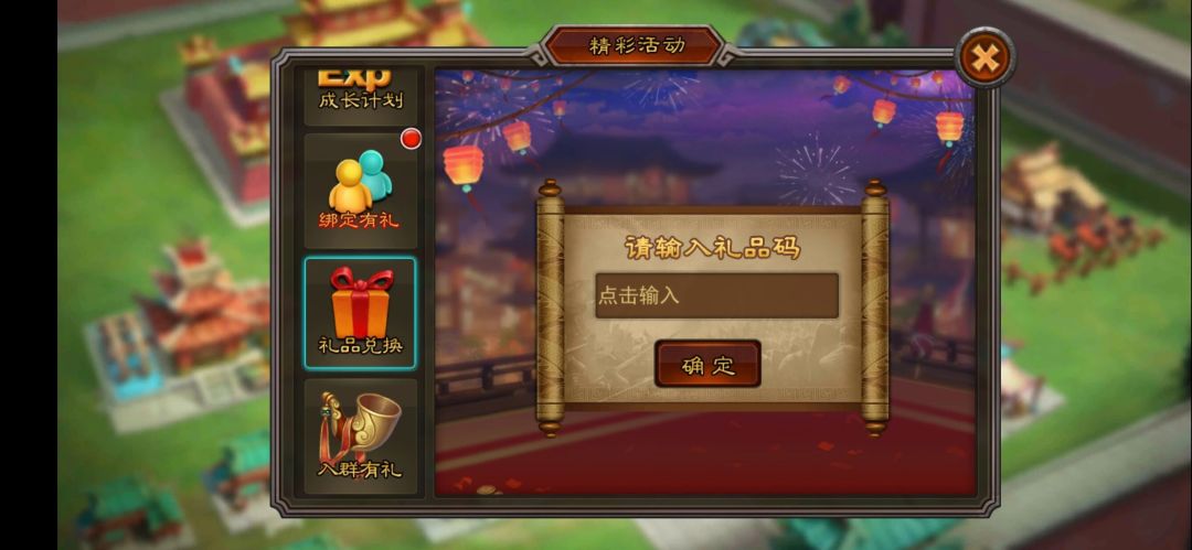 不管是通过官方的微信群还是其他平台的活动,大家都获得了不少礼包码,里面包含元宝和游戏道具。通过新手教程,在主殿界面左侧打开“活动—精彩活动—礼品兑换”,输入礼包码,即可获得奖励。