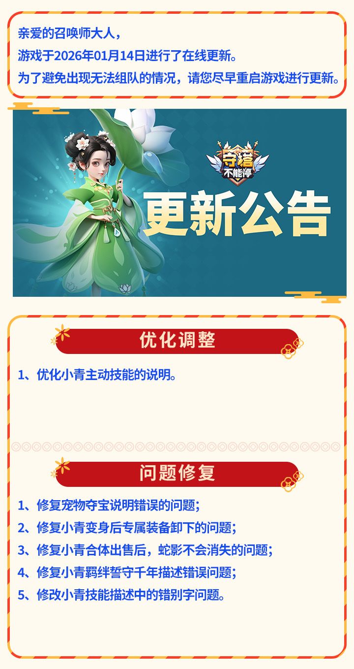 守塔不能停 更新内容公告