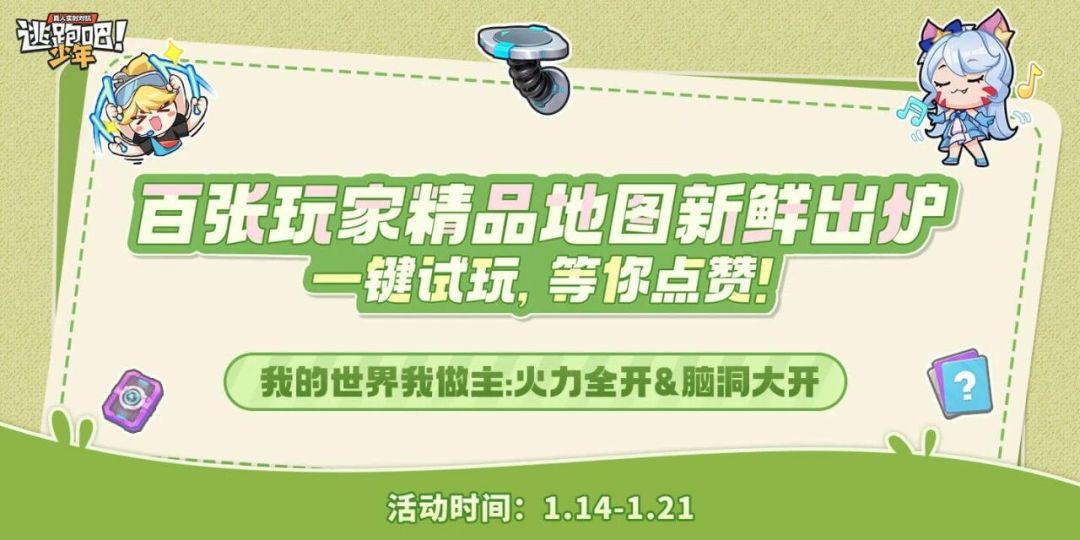 好久不见,少年们!自建房地图共创大赛投票现已开启。此次活动,我们征集了上百张优秀玩家地图作品,分为 “火力全开” 与 “脑洞大开” 两大赛道。所有地图均已上传至玩家模板,大家可在游戏中直接试玩或创建房间。