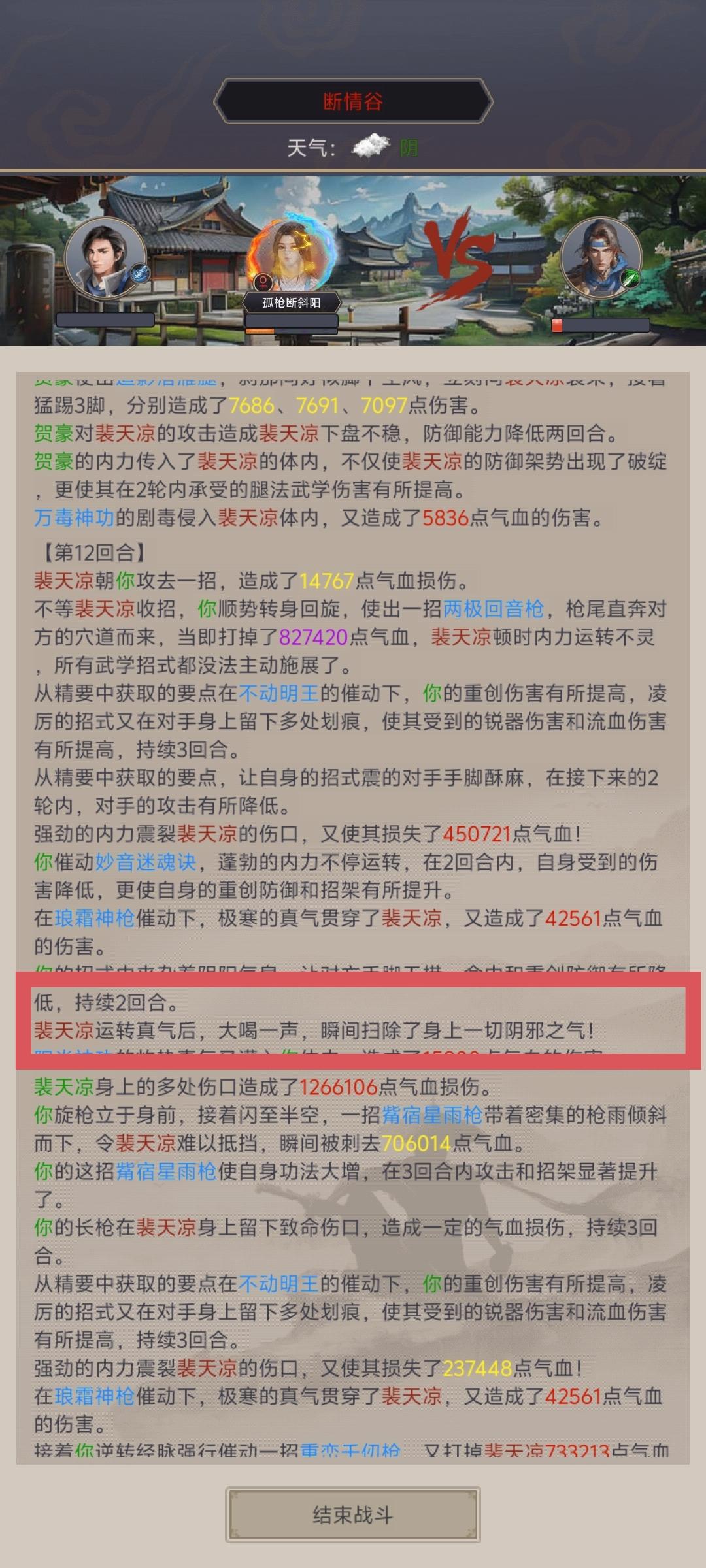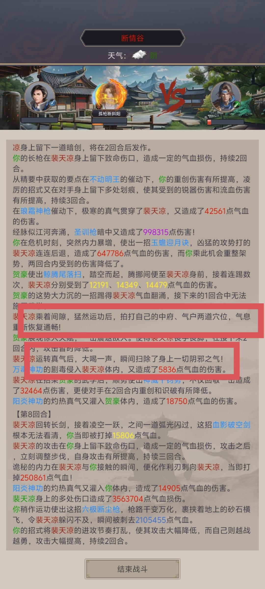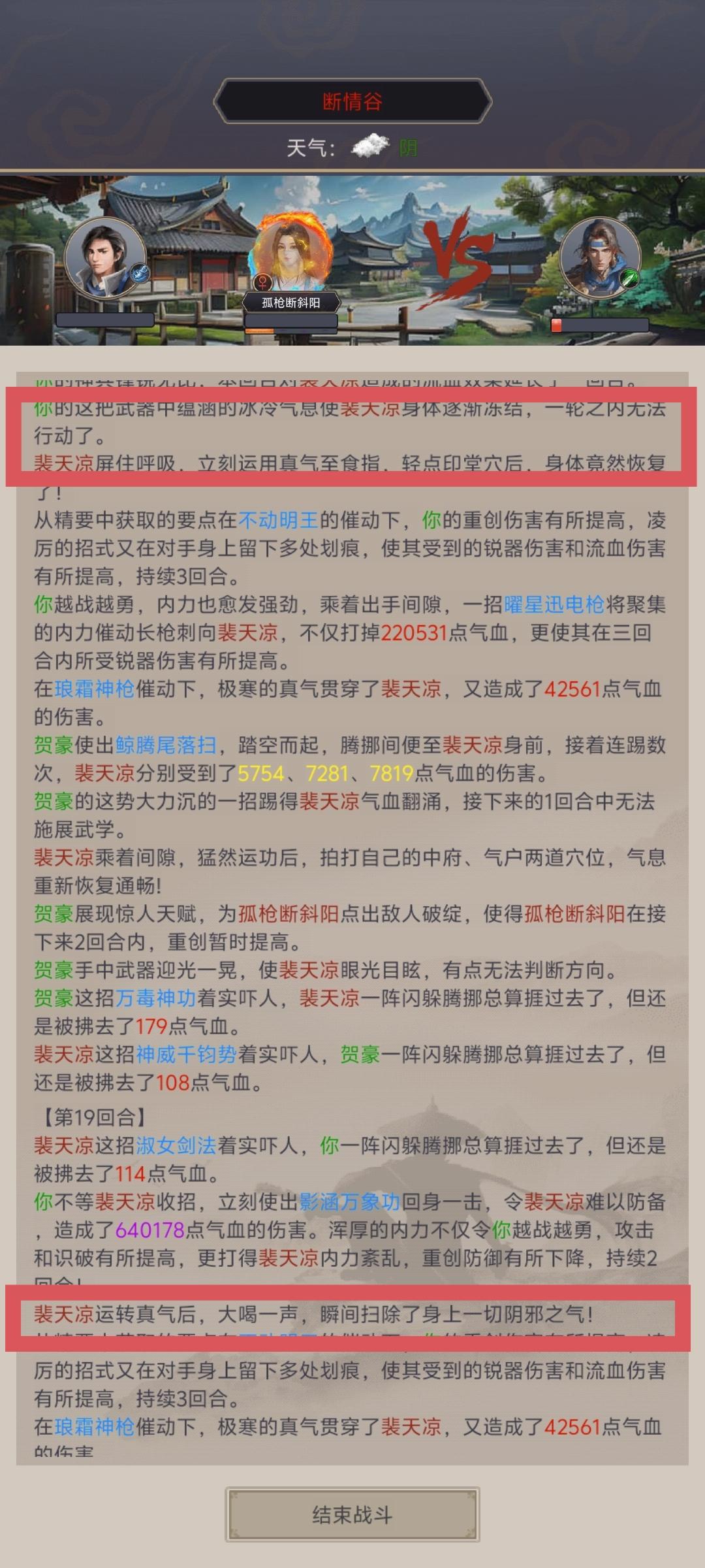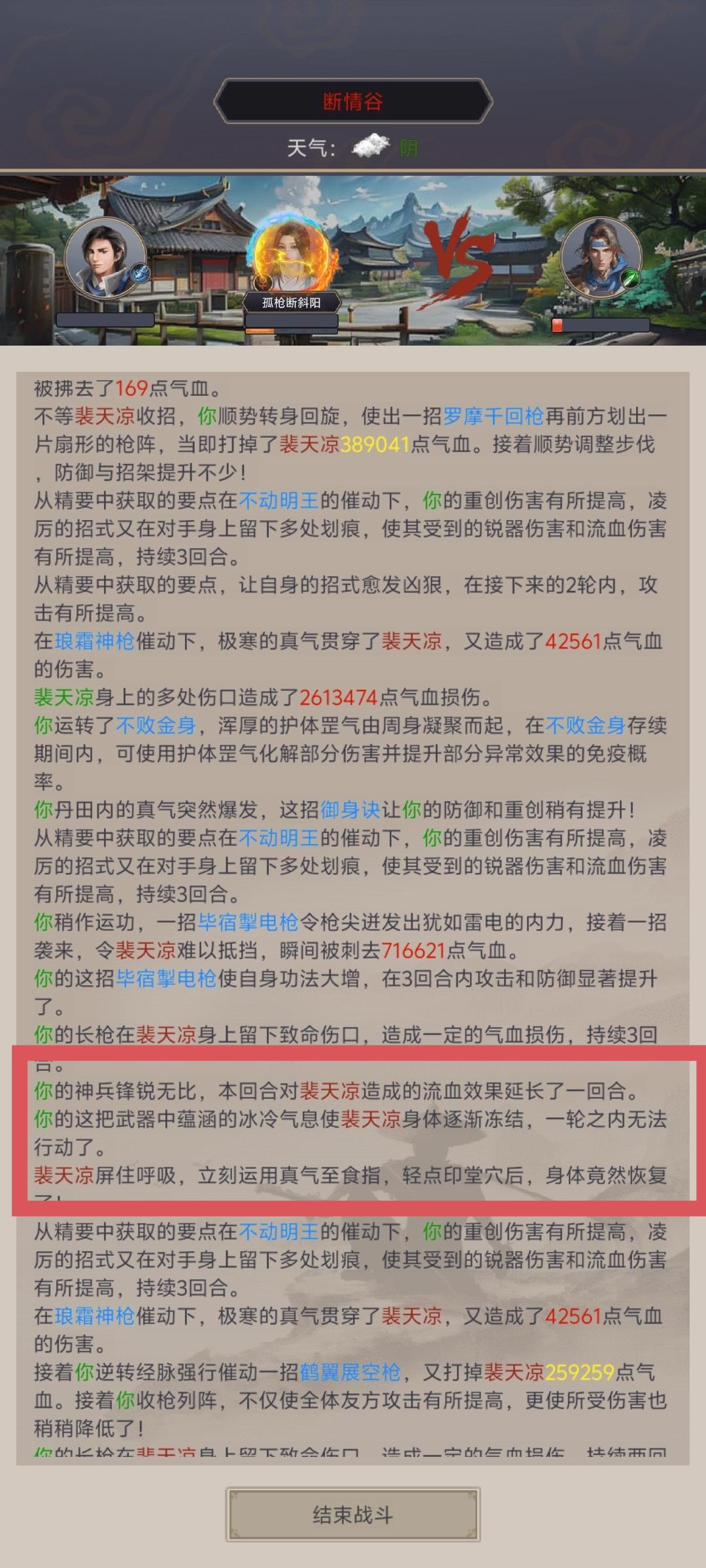 一点负面状态不吃,一个枪不让叠流血,神兵,冰冻效果等于没有,降攻击buff等于没有,属性不过,直伤不够就打不了一点。666游戏做的真棒!那你告诉我,我刷神兵的意义在哪里?弟子天赋的意义在哪里?不说了,一把接近40回合左右,请看图片