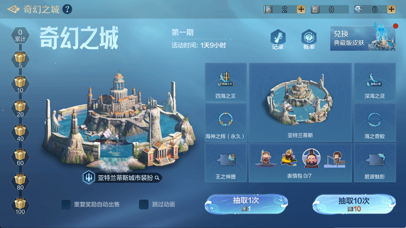 活动内容:在活动期间,消耗「幻城蓝图」可参与抽取「亚特兰蒂斯」城市装扮,同时还能获得以下更多奖励。